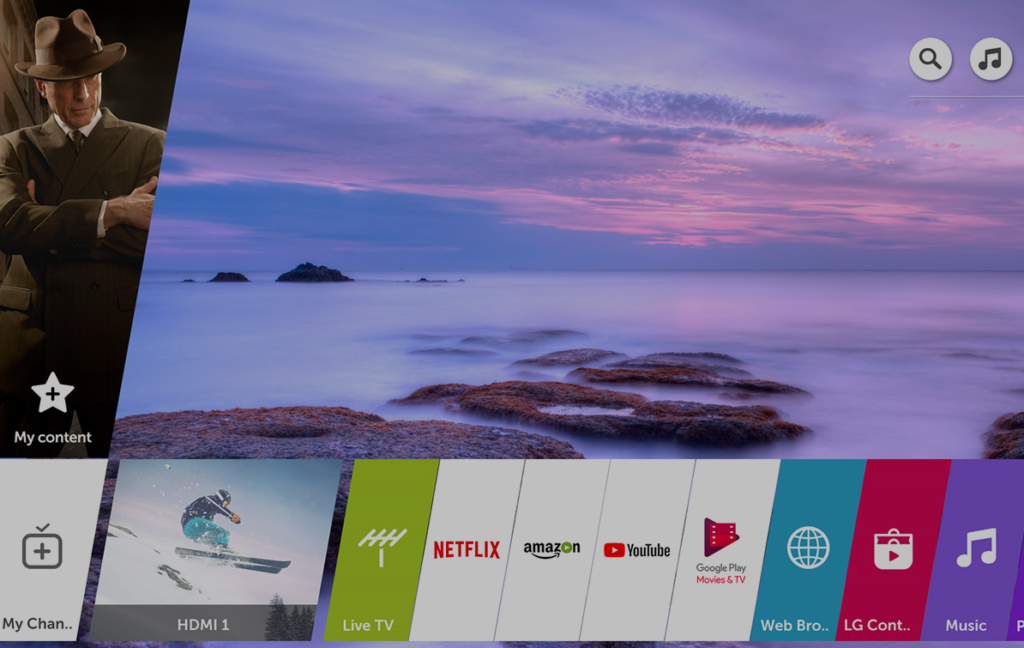 Der LG 49UK6400 bietet eine umfangreiche Smart-TV-Oberfläche auf Basis von webOS 4.0. Enthalten sind alle gängigen Streamingdienste, wie Netflix, Amazon Video und Maxdome sowie einige andere Apps.