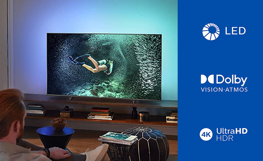 Mit dem eigens entwickelten Ambilight werden die Randfarben der abgebildeten Szenen erkannt und diese in einem wunderschönen Leuchteffekt auf die direkte Umgebung ausgestrahlt. Ein gefühlt größeres Bild und eine höhere Immersion sind das Ergebnis.