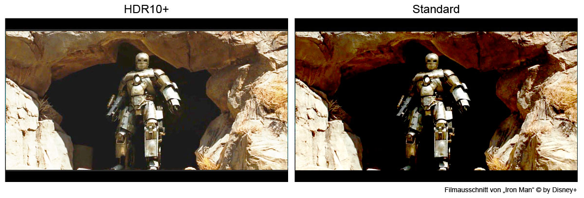 Ein echtes Highlight ist der „intelligente Bildmodus“, getestet mit der 4K-Blu-ray von „Iron Man“. Die Farbsättigung beeindruckt, das Bild wirkt scharf, plastisch und fast dreidimensional. Einziger Kritikpunkt: In tiefschwarzen Bildbereichen zeigt der Q8F Schwächen, da auf Local Dimming verzichtet wird – eine Technik, die erst in Samsungs NeoQLED-Modellen mit Mini-LED-Hintergrundbeleuchtung zum Einsatz kommt. In der Praxis fällt dieser Kompromiss kaum ins Gewicht, abgesehen von etwas helleren Kinobalken oben und unten.