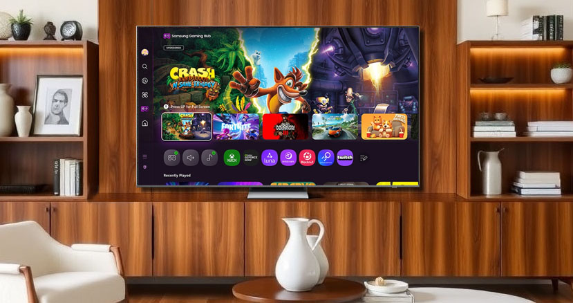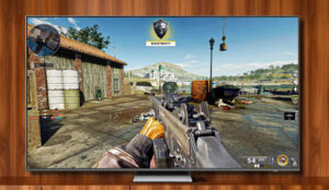 Im Praxistest mit einer PlayStation 5 und dem Ego-Shooter „Call of Duty: Black Ops 6“ erkannte der Samsung-Fernseher die Konsole sofort, schaltete automatisch in den Spielemodus und öffnete die Gamebar. Diese zeigt neben Auflösung, FPS und Eingangsverzögerung auch nützliche Gaming-Features wie eine Mini-Map an. Die Eingangsverzögerung liegt bei schnellen 5 Millisekunden. Selbst ohne angeschlossene Konsole oder PC ist Gaming dank des Cloud-Gaming-Dienstes GeForce Now möglich.